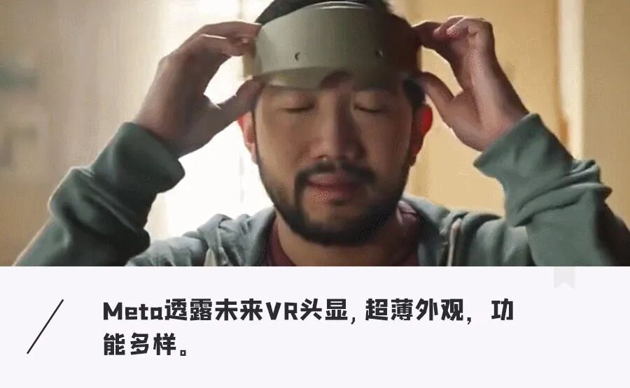 这里所出现的显然不是Oculus Quest 2,而是一款概念化的未来感VR头显,轻薄的设计减轻了佩戴压力。前方区域依旧配备了摄像头,整体设计更加流畅,且更贴合头部。