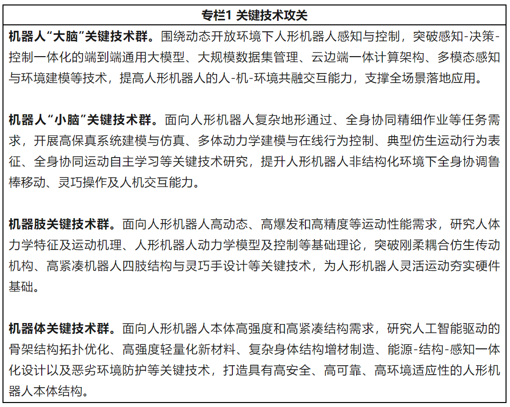 人形机器人创新发展指导意见