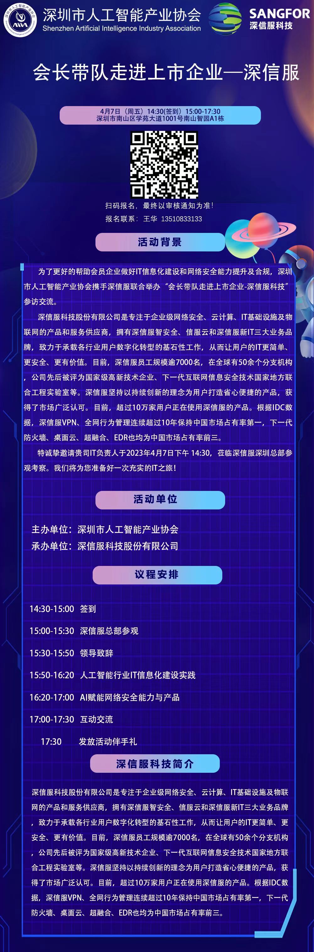 【品牌活动】会长带队走进上市企业一深信服科技即将开展