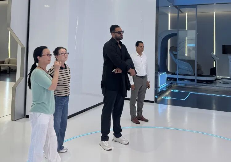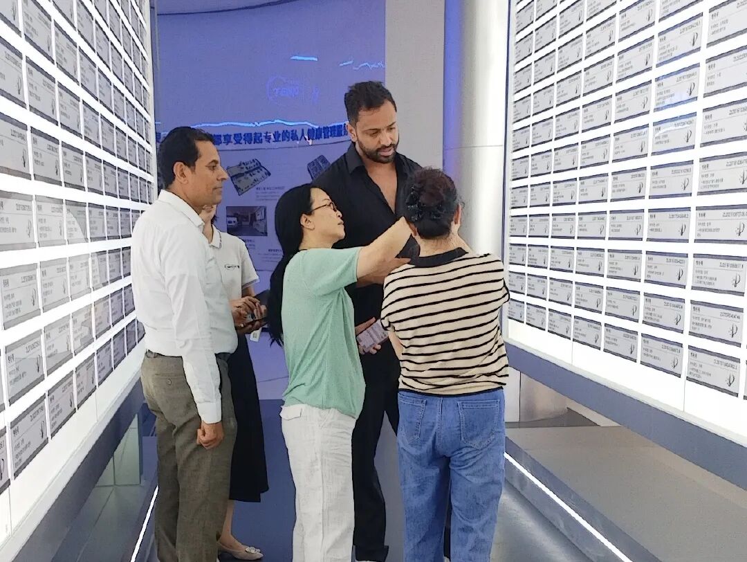 本次考察的重点围绕智慧康养一站式空间技术解决方案和AI健康小屋的场景化应用展开。嘉宾们对“检-评-防-管”一站式健康管理服务与智慧康养场景深度融合的创新模式表现出浓厚兴趣,认为其精准契合了全球范围内日益增长的智能化、普惠化健康管理需求,市场前景极为广阔。