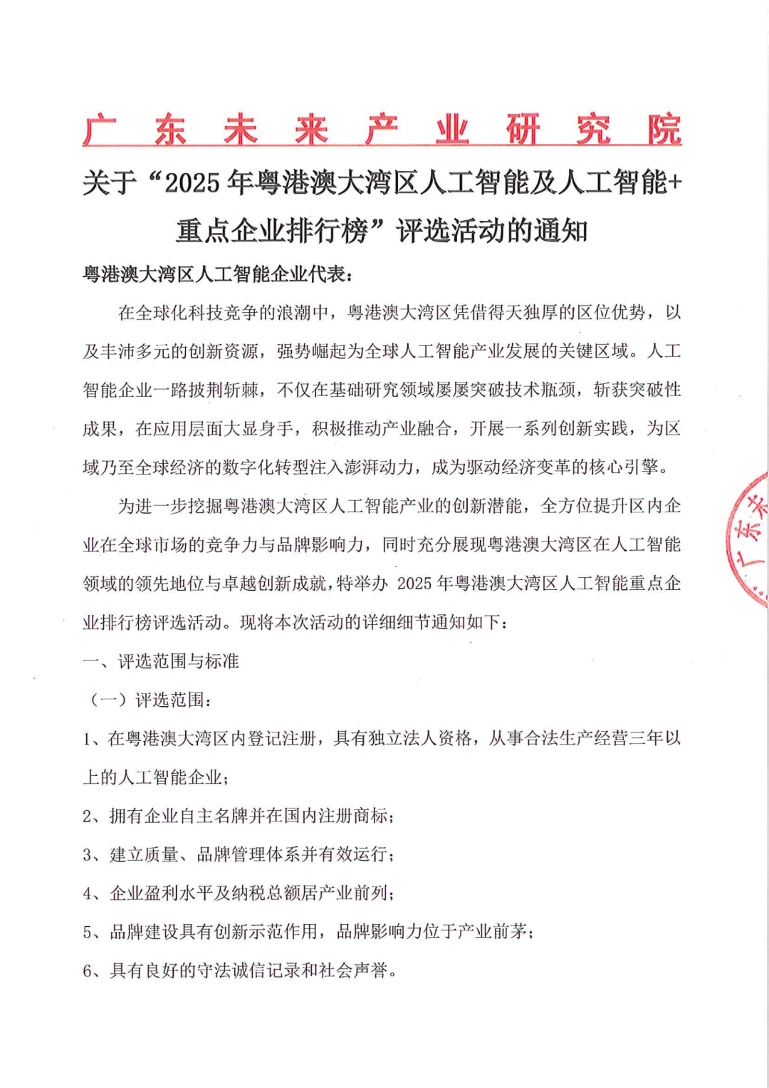 【重要通知】关于“2025 年粤港澳大湾区人工智能及人工智能+重点企业排行榜”评选活动的通知