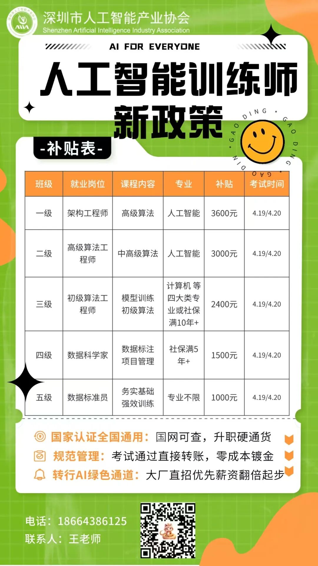 3月20日起,深圳市人力资源和社会保障局正式发布《关于调整人工智能训练师职业技能补贴标准的通知》,2025年最高补贴额度大幅上调至3600元!(原标准3000元,涨幅达20%)