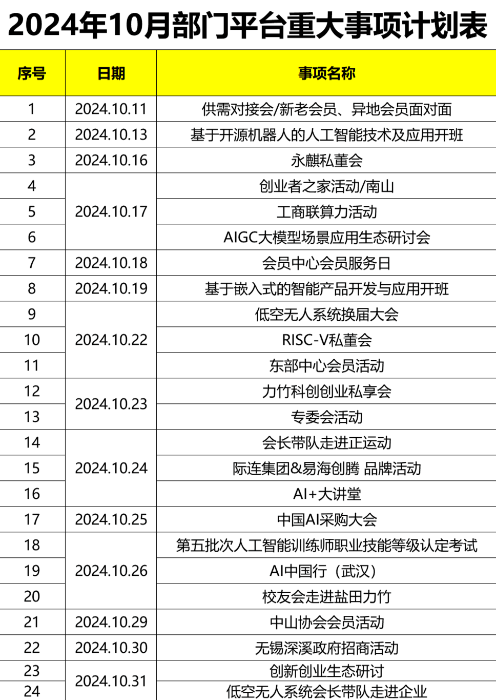 AIIA 2024年10月重大事项计划表
