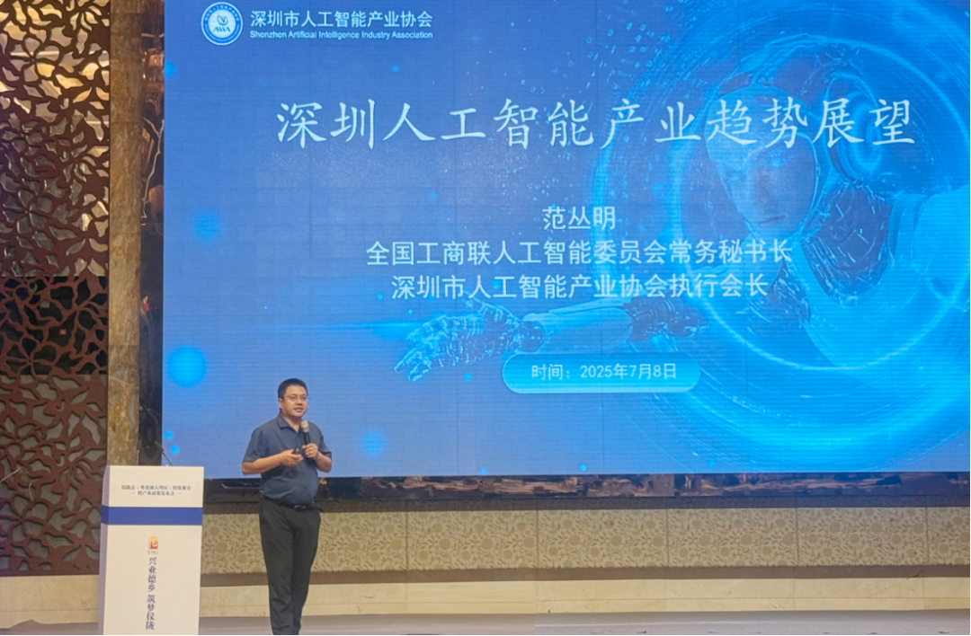 2025年7月8日,由中共仪陇县委、仪陇县人民政府主办的以“兴业德乡 筑梦仪陇”为主题的仪陇(粤港澳大湾区)活动在广东东莞举行。深圳市人工智能产业协会执行会长范丛明受邀出席活动,并在会上发表了主题演讲《深圳人工智能产业趋势展望》。