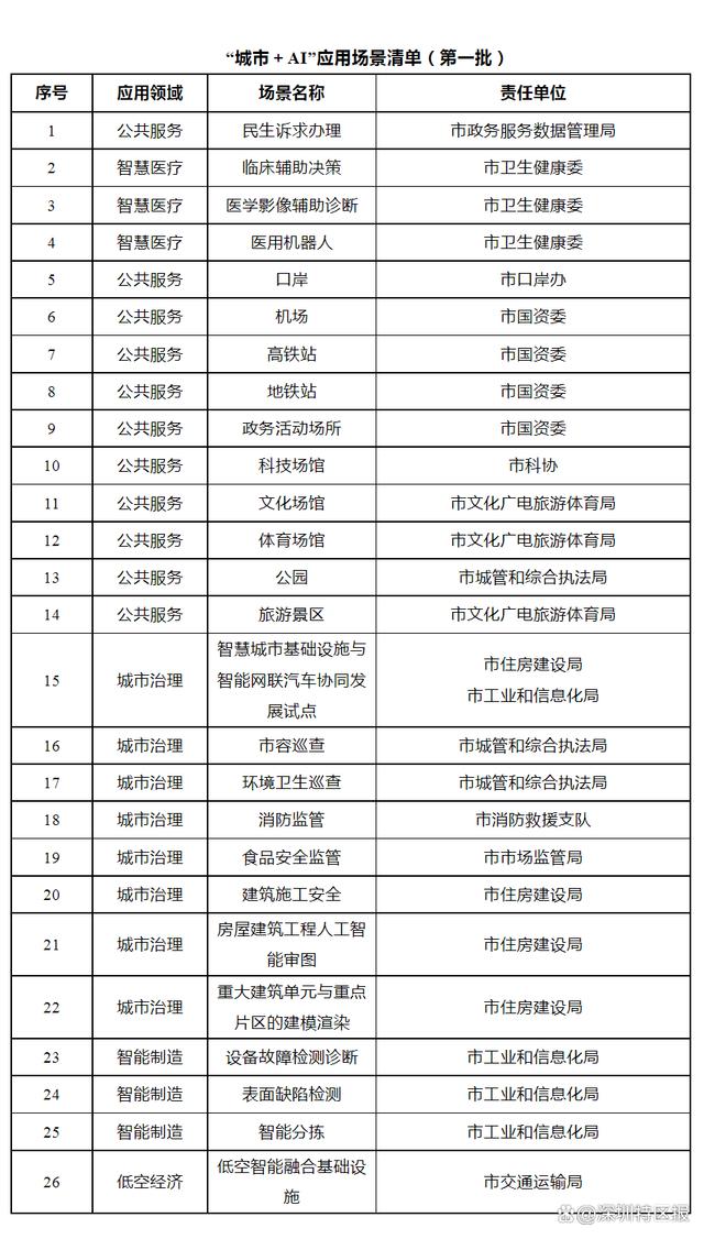 (十)推进“公共服务+AI”。民生诉求平台嵌入民意速办AI机器人,提高平台响应服务效率和质量。在医疗卫生机构探索开展临床辅助决策、医学影像辅助诊断、医用机器人等人工智能应用试点。依托口岸、机场、高铁站、地铁站、政务活动场所、科技文化体育场馆、公园、旅游景区等公共场所,搭建人工智能体验场景。(责任单位:市政务服务数据管理局、市卫生健康委、市口岸办、市国资委、市文化广电旅游体育局、市城管和综合执法局、市科协等)