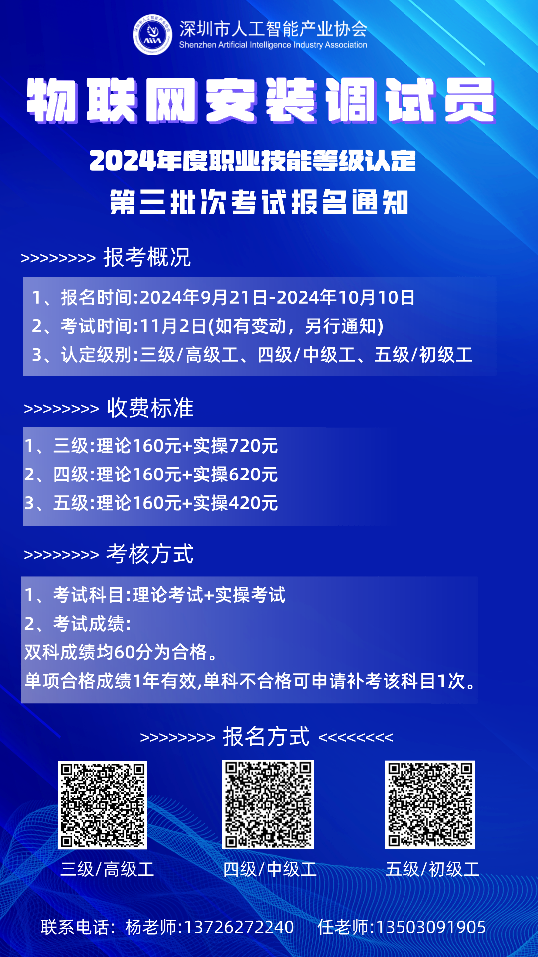 关于做好2024年第三批物联网安装调试员职业技能等级认定考试工作的通知