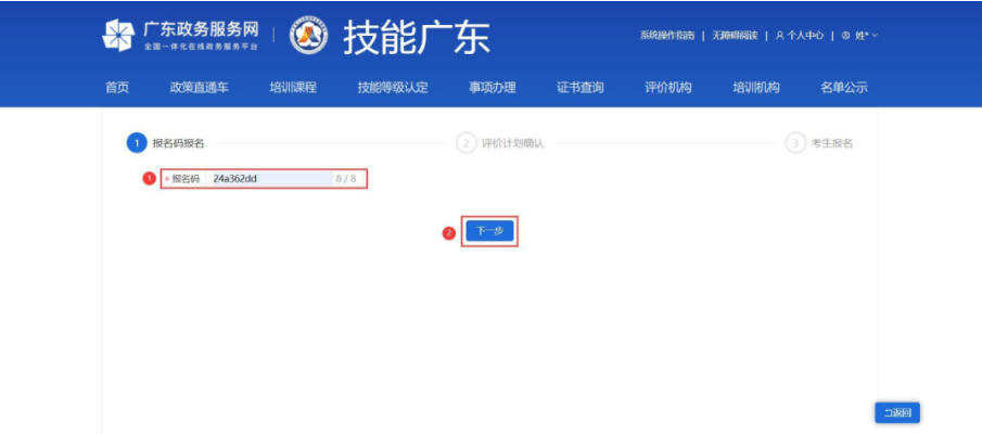 第3步:输入报名码,点击【下一步】